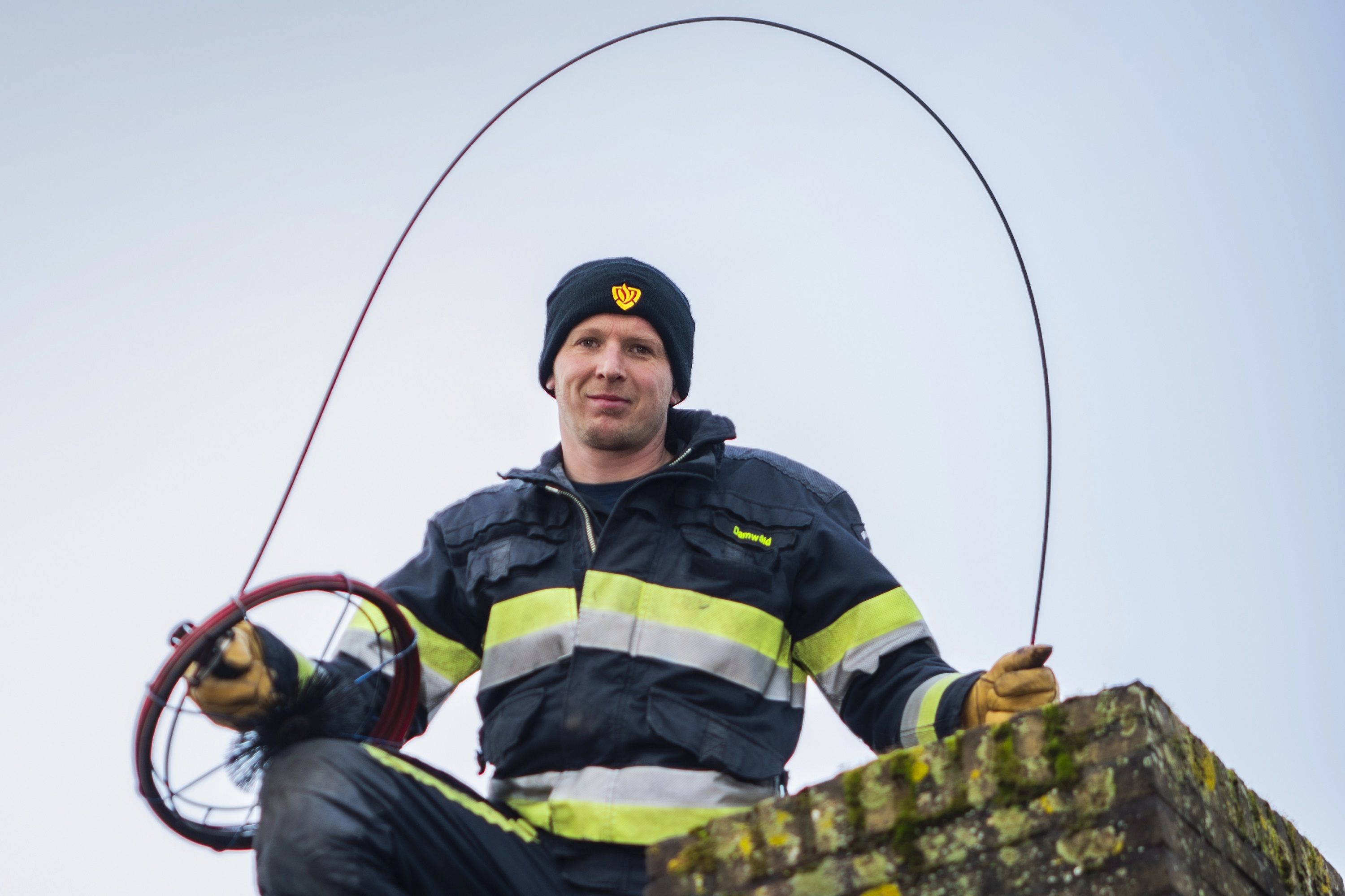 Ruim zeventien jaar werkte Hendrik in ploegendienst bij een betonfabriek. Altijd binnen, hij was er wel klaar mee. Een collega wees hem op het beroep schoorsteenveger. “Dat is echt iets voor jou, zei mijn collega. En het klopt helemaal. Dit jaar zijn we zelfs samen overgestapt. Het is een prachtig beroep. Ik ben vaak buiten, werk op grote hoogte, heb veel vrijheid en kan mensen echt helpen en adviseren. Als schoorsteenveger controleer en reinig ik rookkanalen. Ook geef ik advies over veilig stoken. En dat is nodig.” Hendrik merkt dat steeds meer mensen overstappen op een houtkachel, vanwege de hoge energieprijzen. “Soms gaan kachels aan die jaren niet zijn gebruikt. Je wilt niet weten wat er dan in een rookkanaal kan zitten. Een tijdje geleden vielen er werkelijk 27 vogelskeletten uit een rookkanaal, met veren en al. Als daar vuur bij komt, heb je serieuze brand.”