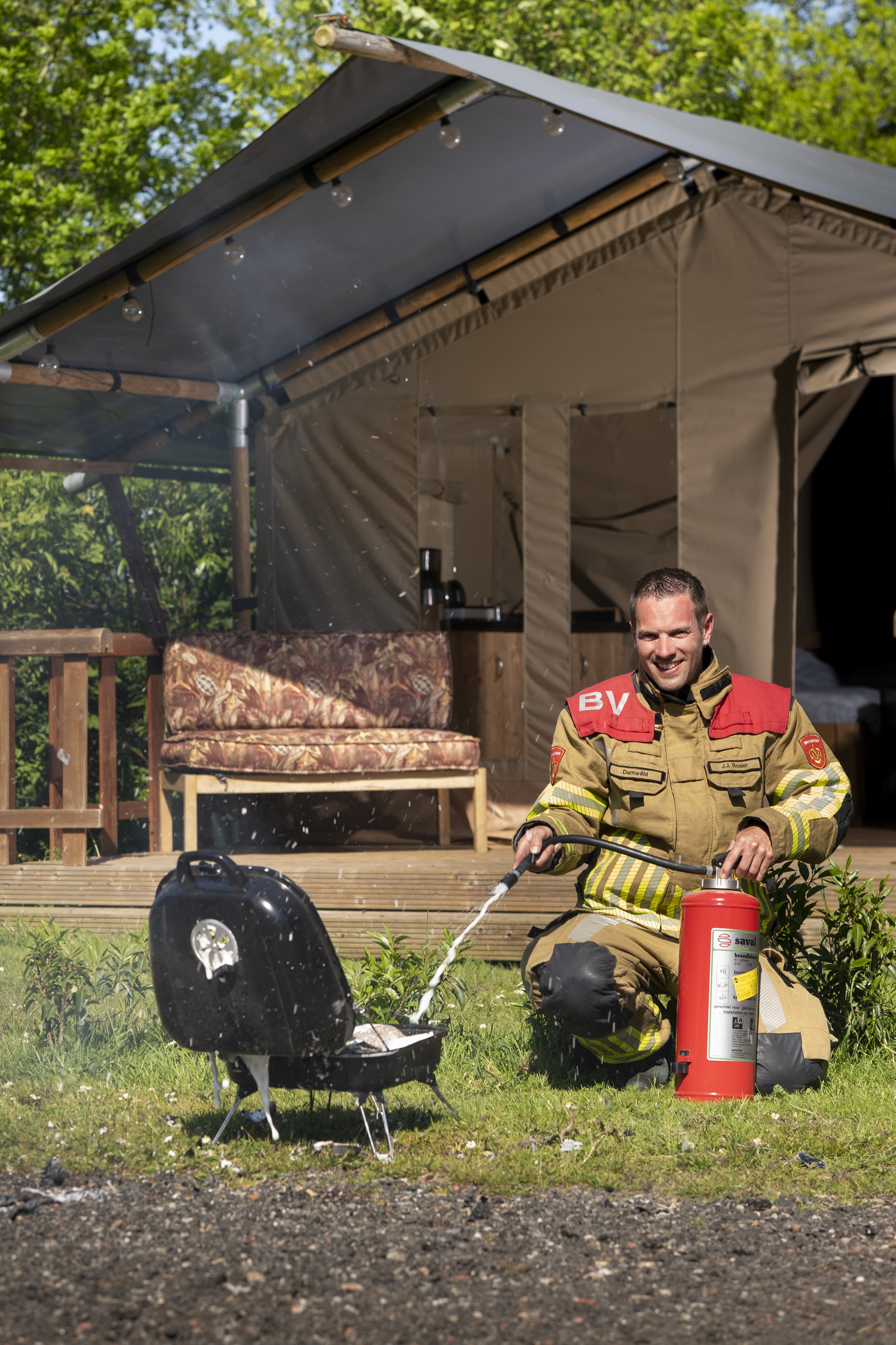 Naast het runnen van de camping is Johannes ploegleider in Damwâld. In 2015 kwam hij bij de post. ‘Ik ben echt trots op onze ploeg. Het is een jonge, gedreven club. Heel nuchter ook, dat past bij me. Ik vind het leuk om in een team te werken en anderen te helpen. Als campingeigenaar ben ik meestal dichtbij en flexibel; dat combineert goed met het brandweerwerk. Soms gaat mijn pieper tijdens het inchecken van gasten. Dan ben ik weg. Na de inzet zoek ik hen op en volgt er áltijd waardering voor de brandweer. Geweldig toch!’