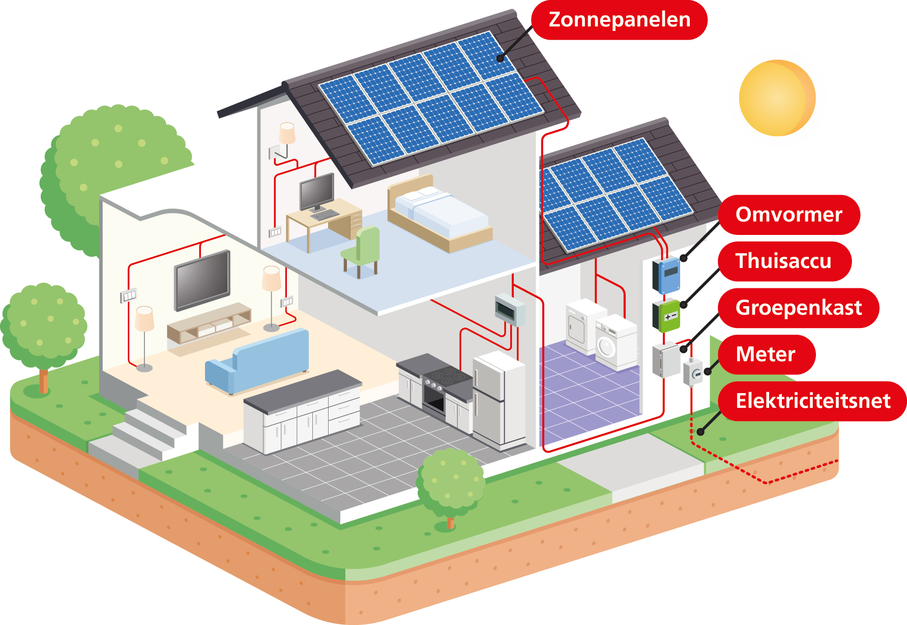 Het woord zegt het eigenlijk al: een EOS is een lithium-ion accusysteem waar tijdelijk elektriciteit in opgeslagen kan worden zodat deze weer op een later moment gebruikt kan worden. Zo kan overdag de met zonnepanelen geproduceerde elektriciteit tijdelijk worden gebufferd en kan deze ’s avonds worden gebruikt om de wasmachine mee te laten draaien.