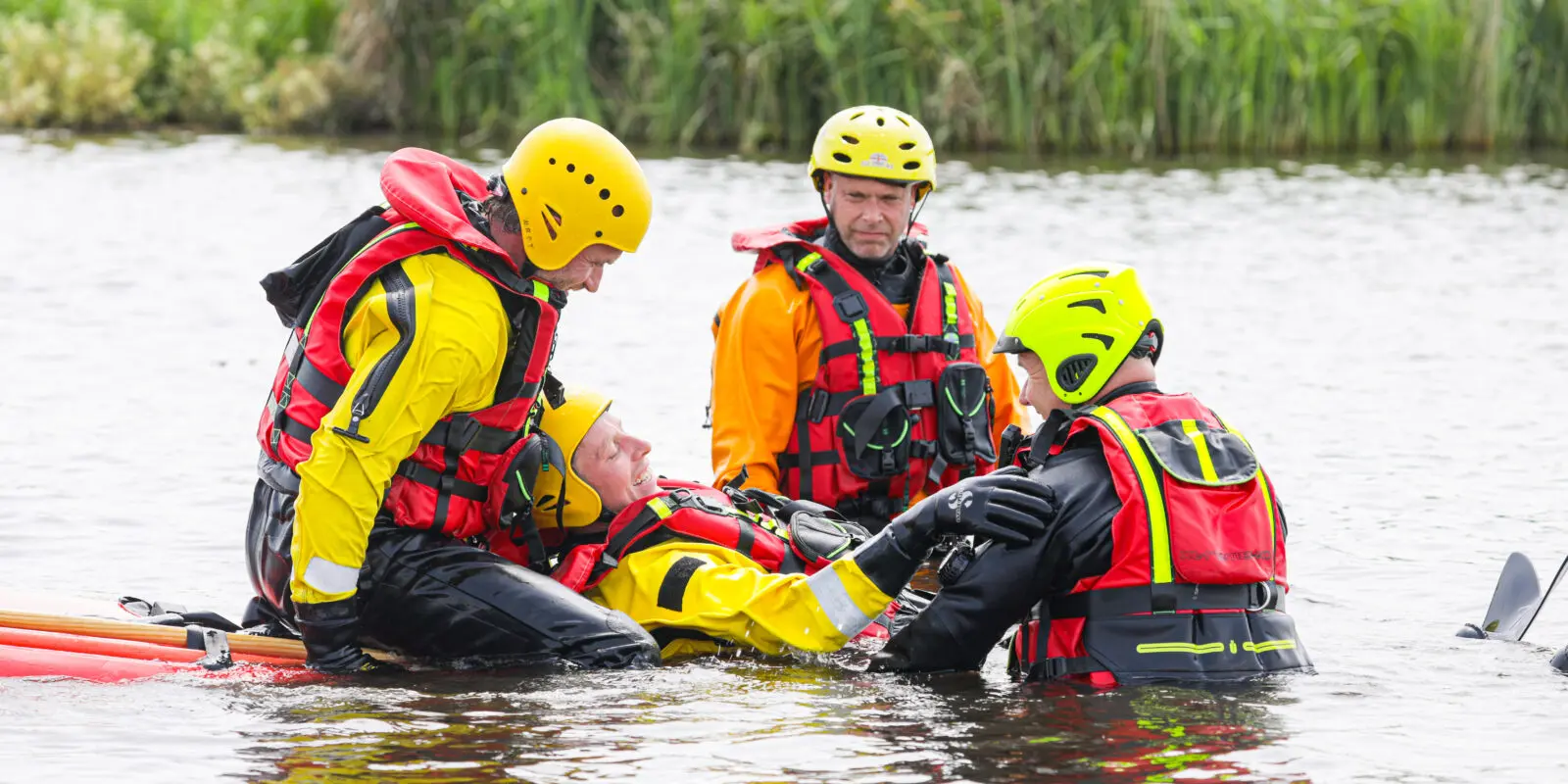 Eind juli 2022 werd het oppervlakteredteam van Giethoorn operationeel. Na een theorieavond hadden zij op 12 en 17 juni hun eerste oefendagen in het water. Bart Tuin, ploegleider Giethoorn vertelt: “Die oefeningen waren vooral gericht op het zwemmen. Ook gaf het ons de kans nog eens goed naar het materieel te kijken wat we écht nodig zouden hebben. Tot tien jaar geleden doken we vanaf deze post. Het oprichten van dit oppervlakteredteam was dus voor vrijwel de hele ploeg iets nieuws. Er was en is vooral heel veel enthousiasme om te starten. We bezochten daarom onder andere post Wolvega van Brandweer Fryslân. Het project is en was gericht op samenwerking. Veiligheidsregio Zuid-Holland-Zuid heeft ons flink geholpen waardoor onze opzet nu vrijwel hetzelfde is als die van hun.”