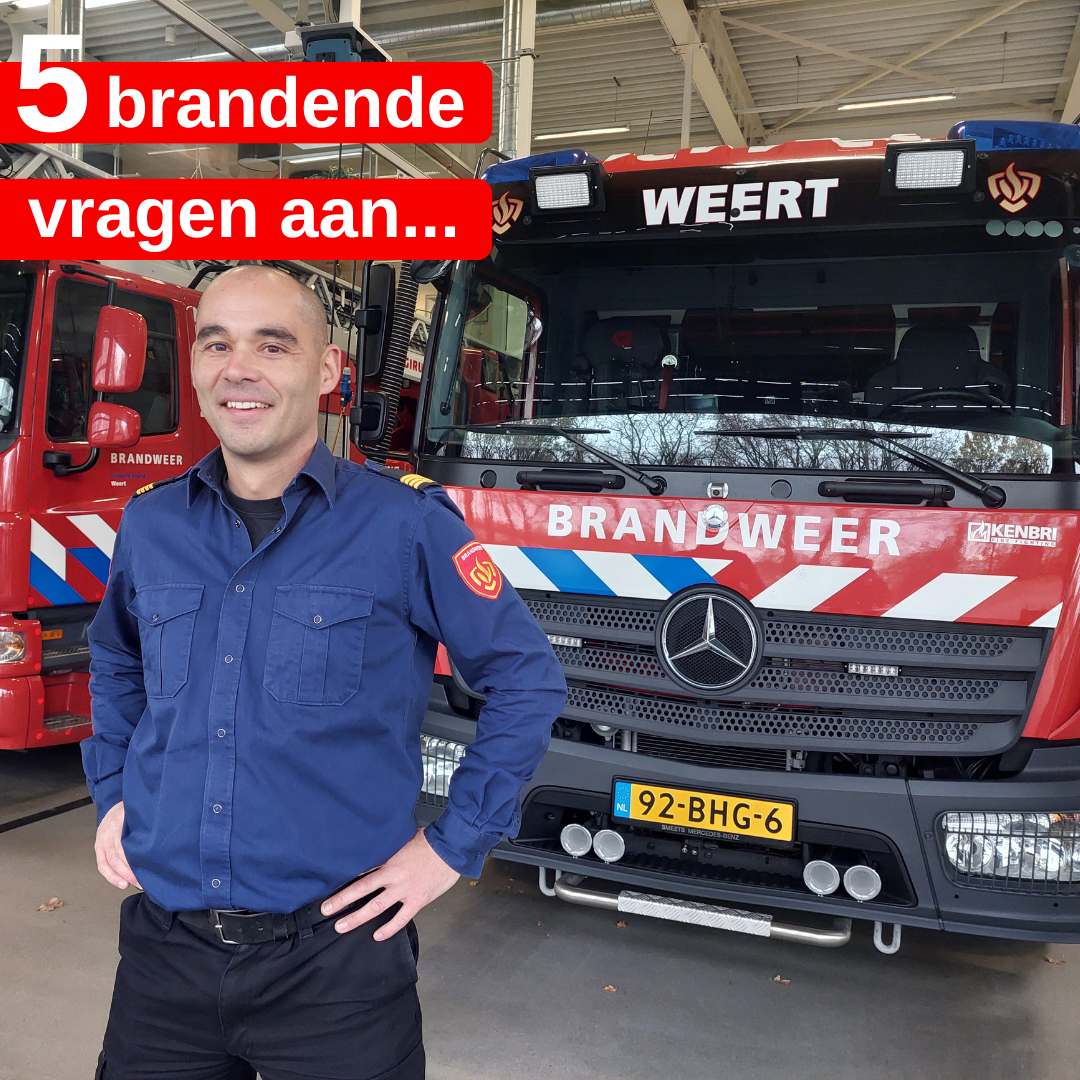 Jeroen Söntjens vervult verschillende functies, bij twee verschillende afdelingen binnen de brandweer: Risicobeheersing én Incidentbestrijding. Deze maand stellen we de 5 brandende vragen aan hem. Jeroen: “De combinatie van verschillende functies helpt mij om mijn werk beter te doen en maakt het nog leuker en veelzijdiger”.