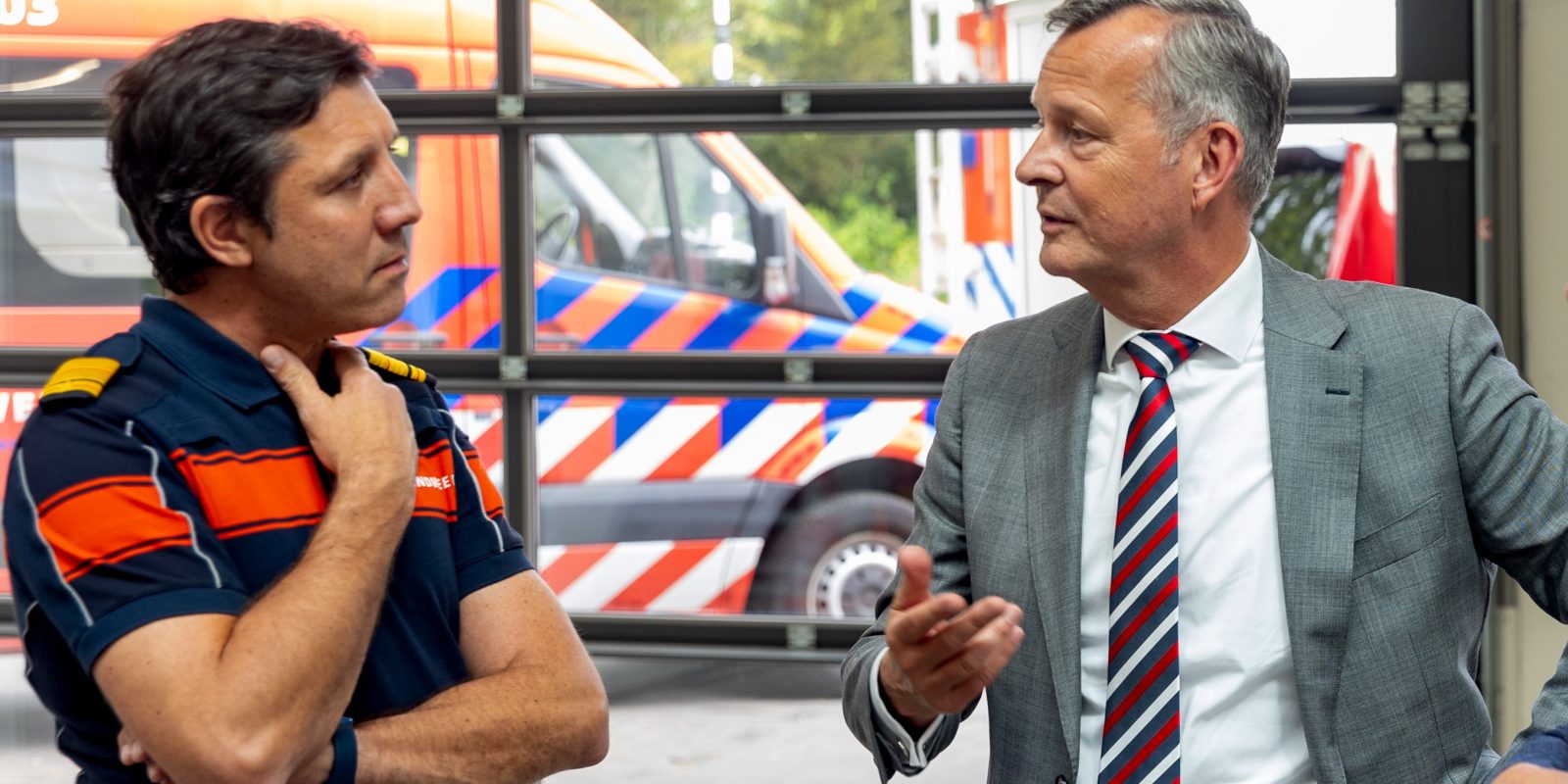 De heer Van Dijk werd vervolgens uitgenodigd voor een rondleiding door de Schoorlse Duinen, een hoog risicogebied in Noord-Holland Noord waar een natuurbrand een groot risico vormt voor inwoners, recreanten en ondernemers. Met een gebiedsverkenningsvoertuig van de brandweer en een boswachtersvoertuig stonden zij op verschillende plekken stil. Een brandweerexpert en twee boswachters vertelden over de natuurbranden die we van 2009 tot 2011 hebben getrotseerd. Ook hadden ze het over de toekomstige beheersmaatregelen, waarbij de brandweer nauw samenwerkt met PWN, Staatsbosbeheer en de betreffende gemeente(n).