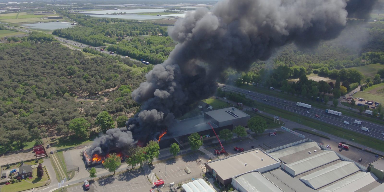 Op weg naar de brand zagen collega’s dikke rookwolken boven de A73. Ter plaatse breidde de brand zich razendsnel uit. Ook de rookontwikkeling nam snel toe. Door de stevige wind, de brandgevoelige materialen én de enorme panden (JYSK zo’n 1.000 m², Pets Place Boerenbond 1.500 m²) werd de situatie snel complex.