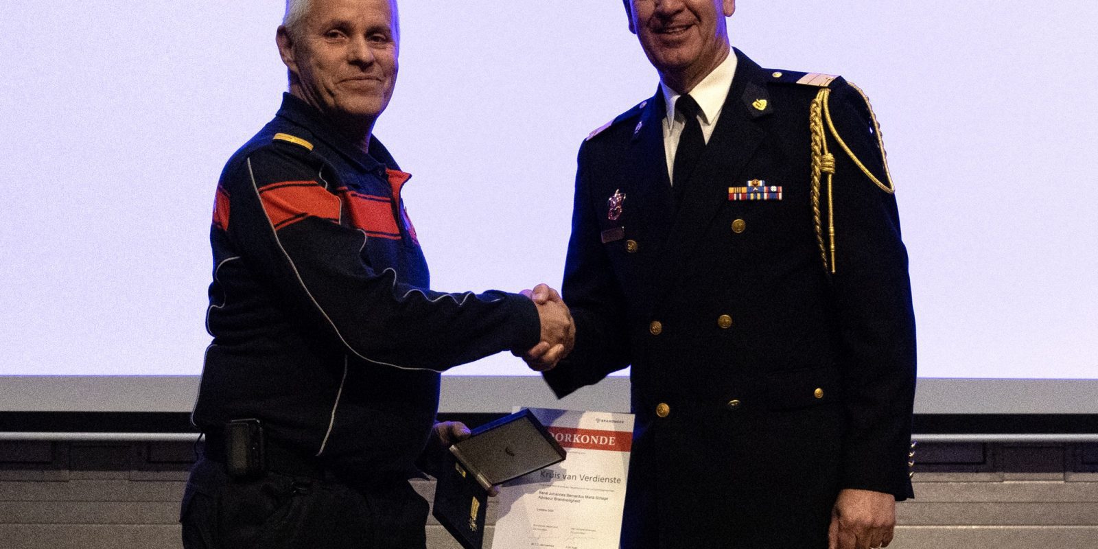 De bijeenkomst voor de sector Brandveiligheid van Brandweer Twente kreeg vanmiddag een bijzondere wending. De Twentse Adviseur Brandveiligheid en Officier van Dienst Brandweer, kreeg het Zilveren Kruis van Verdienste opgespeld door Stephan Wevers, commandant Brandweer Twente. Deze Koninklijke onderscheiding wordt uitgereikt als ‘waardering voor een persoon die zich op bijzondere wijze verdienstelijk heeft gemaakt voor de brandweer in het Koninkrijk’. Stephan Wevers: “Ik ben enorm trots op alles wat René heeft bereikt op het gebied van brandveiligheid in Twente en Nederland. De onderscheiding tekent zijn brede kennis en ervaring en enorme drive om brandveiligheid continu naar een hoger niveau te brengen. Dik verdiend!”