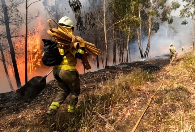 Het grootste risico voor de Bombeiros Forestais is insluiting. De Spanjaarden zijn daar uiterst alert op. Henry: “In Galicië zijn de oppervlakten enorm. Zonder dat je het door hebt kun je dan ingesloten raken. In het verleden zijn hierbij brandweermensen omgekomen. Daarom hebben ze altijd een look-out op een hoog punt. En ploegen staan via portofoons met locatiemeldingen continu met elkaar in contact.’ Daarnaast is het ook in het veld een kwestie van alert zijn. ‘Met handgereedschap werk je minimaal anderhalve meter uit elkaar. Om te voorkomen dat je per ongeluk op elkaar inslaat met een bijl. En in rotsachtig terrein kun je zomaar struikelen: daar moet je continu om denken.”