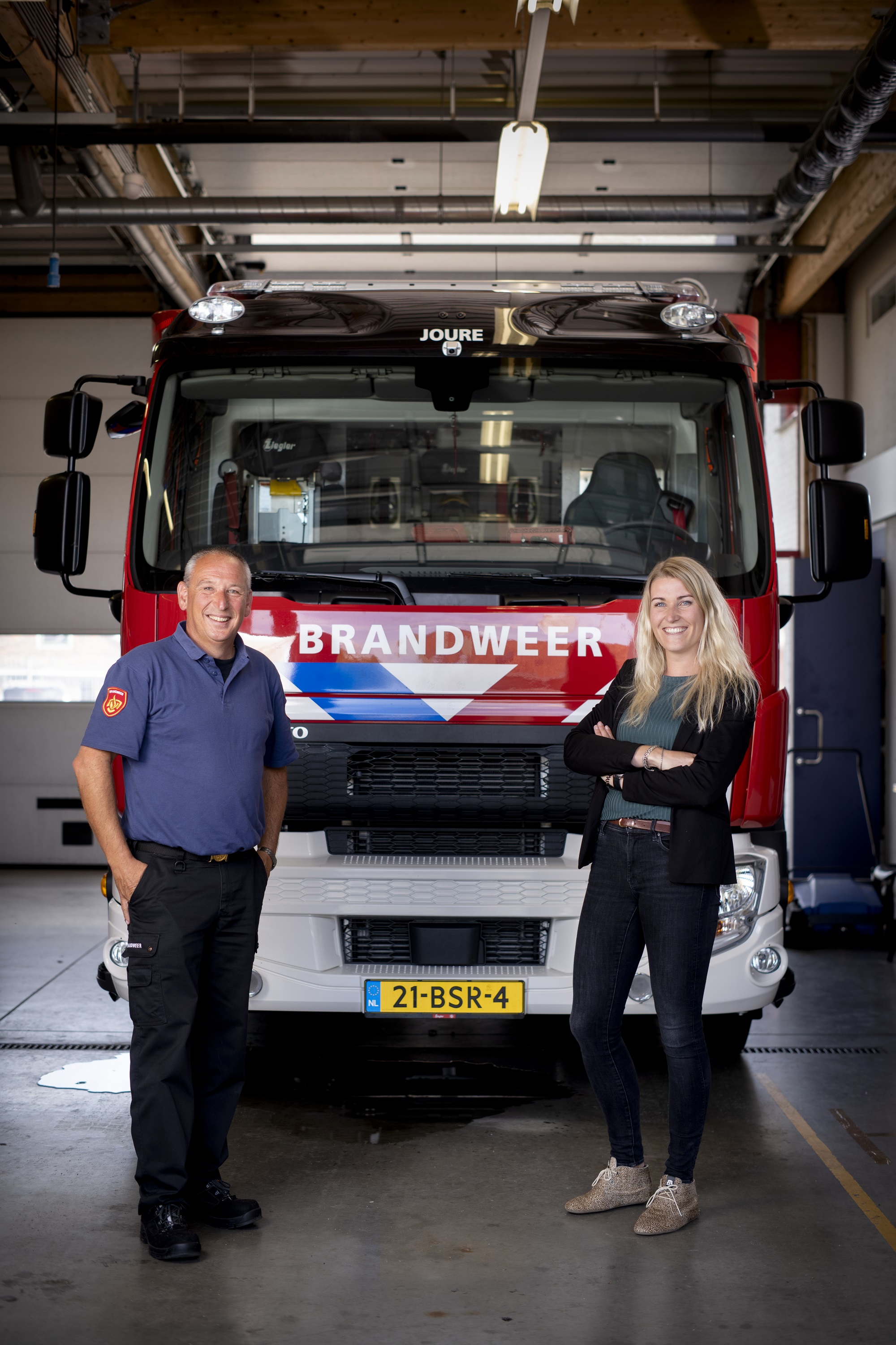 ‘Met deze wagen komt er straks wel iets aanrijden hoor!’ Piet van der Vlist (clusterhoofd Materieelbeheer) en Hester Snijder (inkoopadviseur) genieten oprecht van de nieuwe tankautospuit. Niet alleen omdat die TS er best stoer en robuust uitziet. Vooral omdat er achter de schermen hard is gewerkt om een TS samen te stellen waarmee we zestien jaar vooruit kunnen. Eentje die voldoet aan alle wensen en eisen, die past binnen het budget én waarin de nieuwste snufjes zijn te vinden.