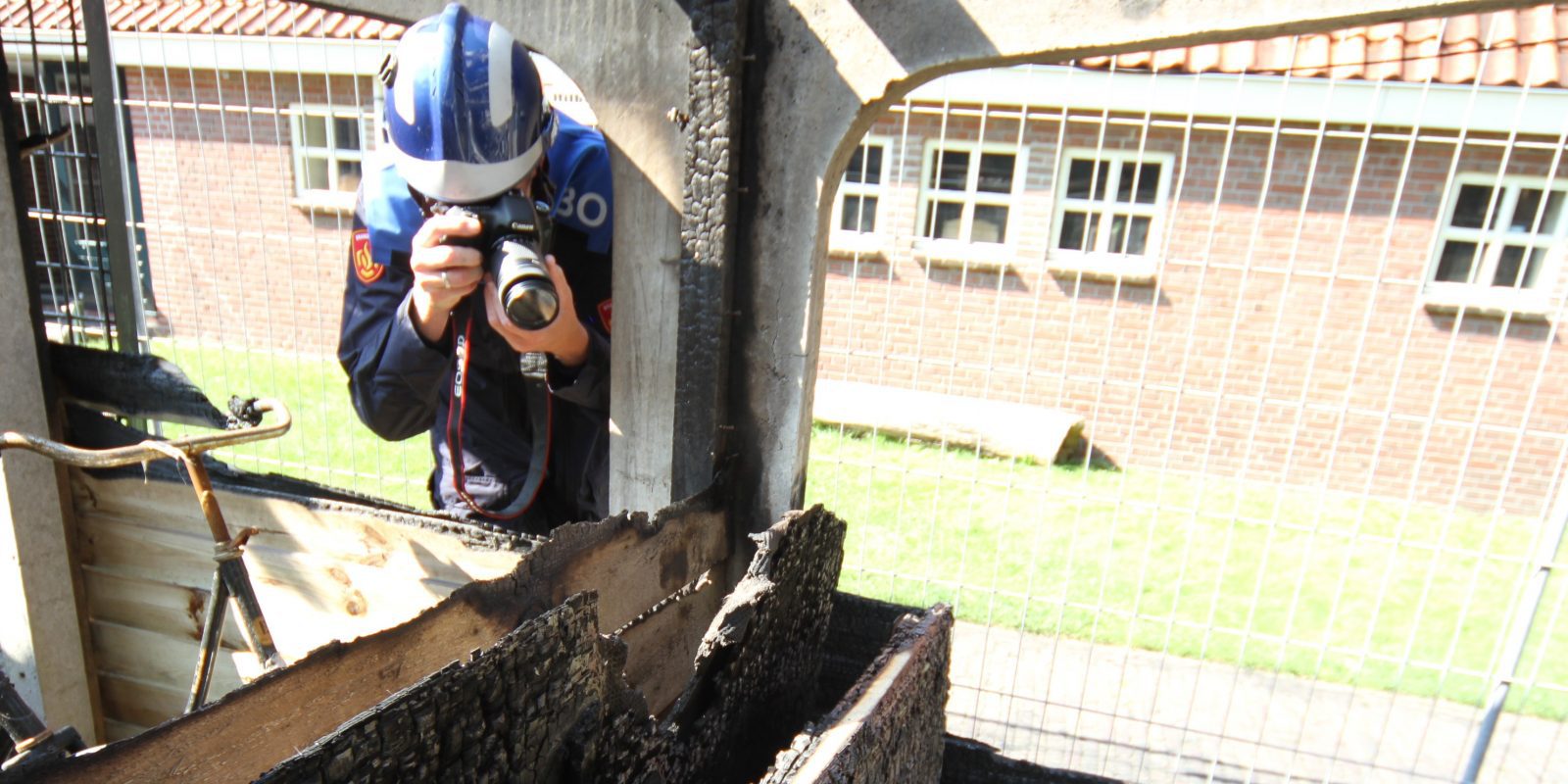 Maar hoe gaat zo’n onderzoek nou eigenlijk in zijn werk? Simpele casussen kunnen de brandonderzoekers telefonisch afhandelen door direct betrokkenen te spreken, maar bij complexere incidenten gaan de onderzoekers ter plaatse. Het begint altijd met research: wat voor uitruk is het geweest? Wie waren erbij betrokken? Stefan: “Ook zoeken we van tevoren vaak al wat nieuwsberichten op, zodat we een zo compleet mogelijk beeld hebben voordat we naar de plek van de brand gaan. Eenmaal ter plaatse houden we eerst onze handen op de rug: we raken niks aan. We kijken rond en maken foto’s. Daarbij gaan we van het minst verbrande naar het meest verbrande, zo kom je steeds dichter bij de kern.”