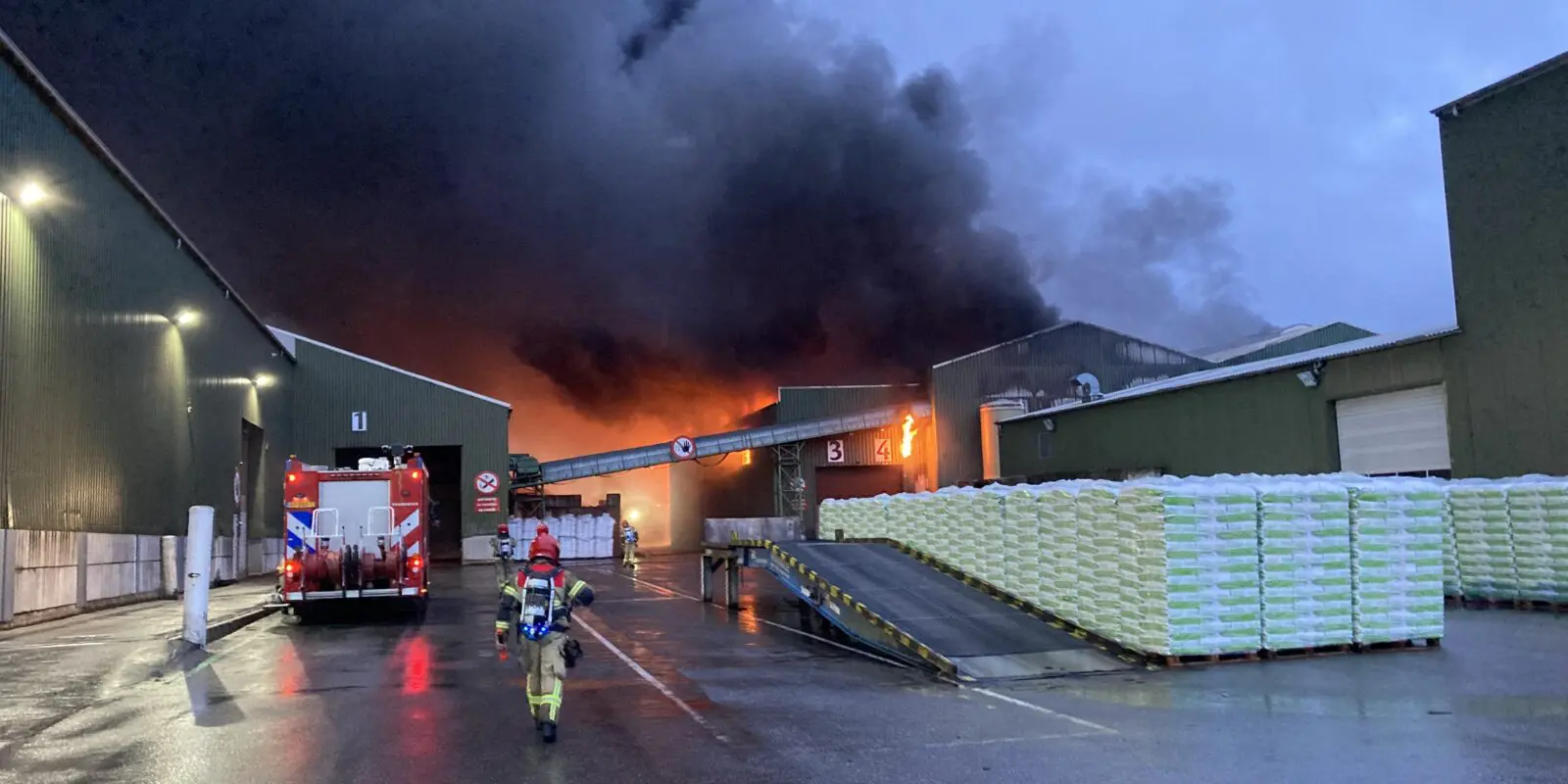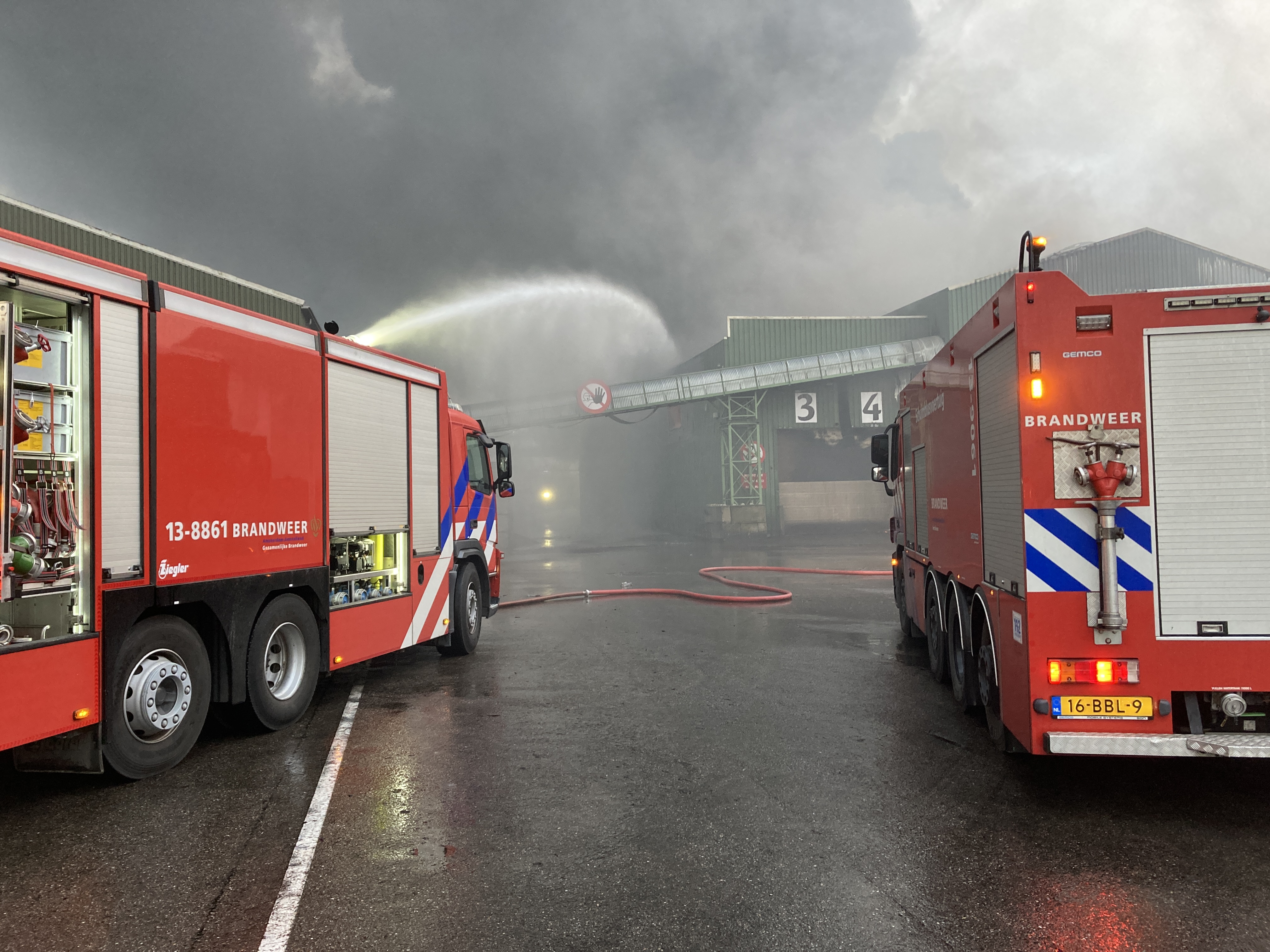 Rond 5.00 uur is de meldkamer gealarmeerd. Het gaat om een grote loods die vol staat met onder andere potgrond. Het is een intense brand op een groot oppervlakte waar veel rook bij vrijkomt. Het is snel duidelijk dat de loods niet meer te redden is. Er wordt opgeschaald naar zeer grote brand. Materieel en menskracht uit meerdere regio’s worden opgeroepen ter ondersteuning. Zo zijn aanwezig: de havendienst met blusboten, de brandweerblusboot Jan van der Heyde en industriële blusvoertuigen. Ook betrokken is het samengestelde droneteam van Flevoland en Gooi- en Vechtstreek. Zij maken overzichtsbeelden en meten de warmte in de loods. Het gebouw is door instortingsgevaar niet te betreden.