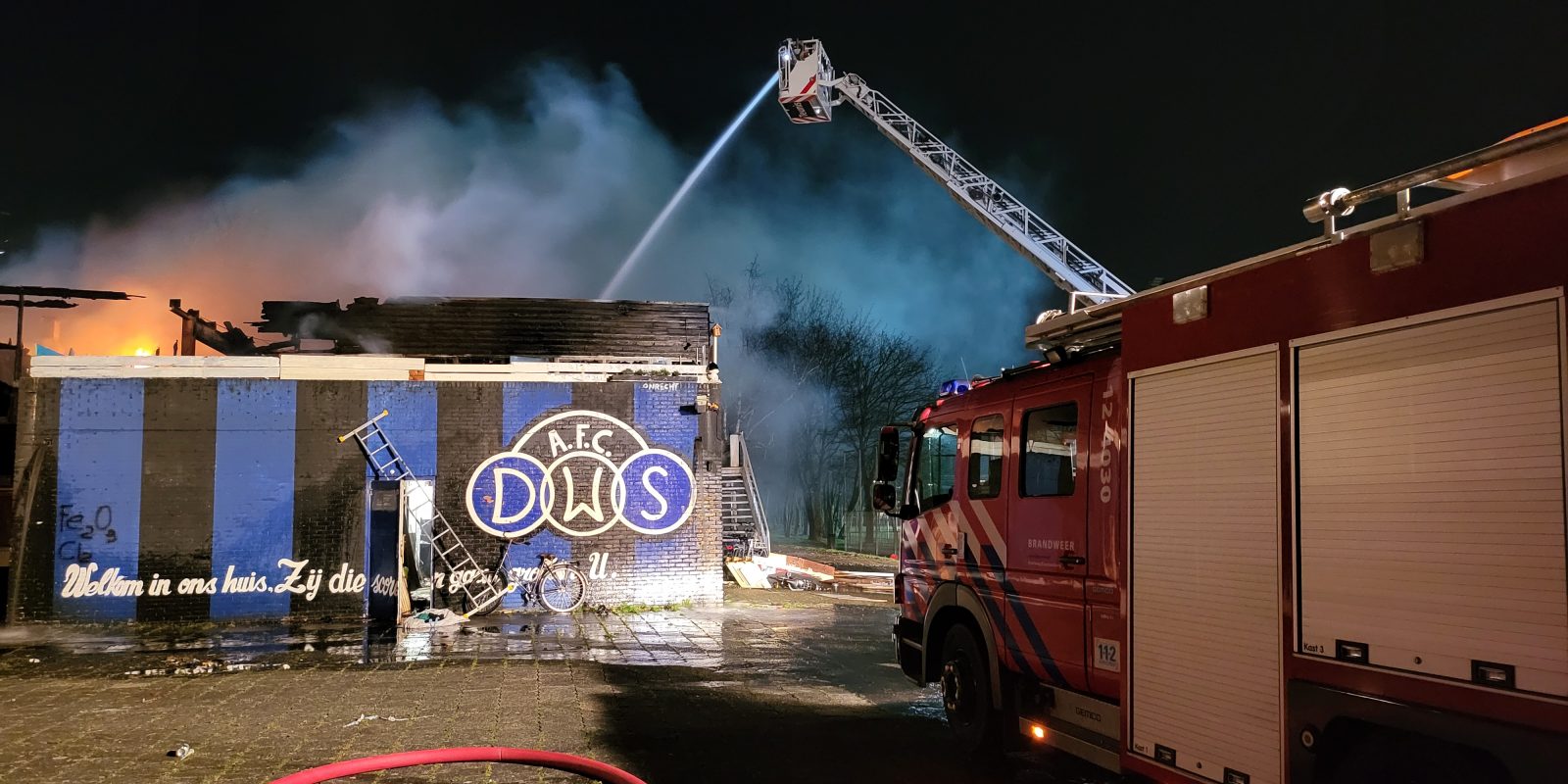 In de nacht van woensdag op donderdag heeft een zeer grote brand gewoed in een voormalig clubhuis van een voetbalvereniging in Amsterdam Nieuw-West. Het pand is grotendeels verwoest door de brand. Eén persoon is naar het ziekenhuis vervoerd in verband met het inademen van rook.