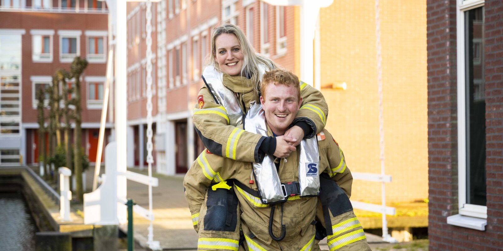 Esther: “Natuurlijk, het is druk, zeker met een gezin, een baan en je sociale leven. Daarom heb ik twee jaar geleden nog op de rem getrapt. Toen zag ik een oproep van de brandweer op Facebook en het leek me meteen al heel gaaf, maar onze twee kinderen waren toen nog wat jonger en ik zag vooral beren op de weg. Omdat het bleef kriebelen ben ik afgelopen september gaan kijken bij de open oefenavond. Ik was meteen verkocht, echt waar. Ik vind het fantastisch. Het is superleuk – zeker ook met de collega’s op de post – en ik heb de tijd die het kost er graag voor over. De brandweer vraagt gemiddeld zo’n tien uur per week, inclusief de oefen- en de opleidingsavond. Het kost me eigenlijk geen moeite, het gééft vooral energie. Ik denk vaak: ik had dit veel eerder moeten doen.”