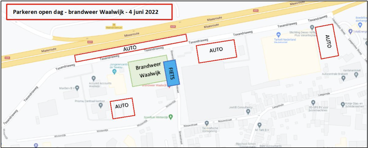 Kom je met de auto bekijk dan de afbeelding hieronder voor de parkeer informatie.