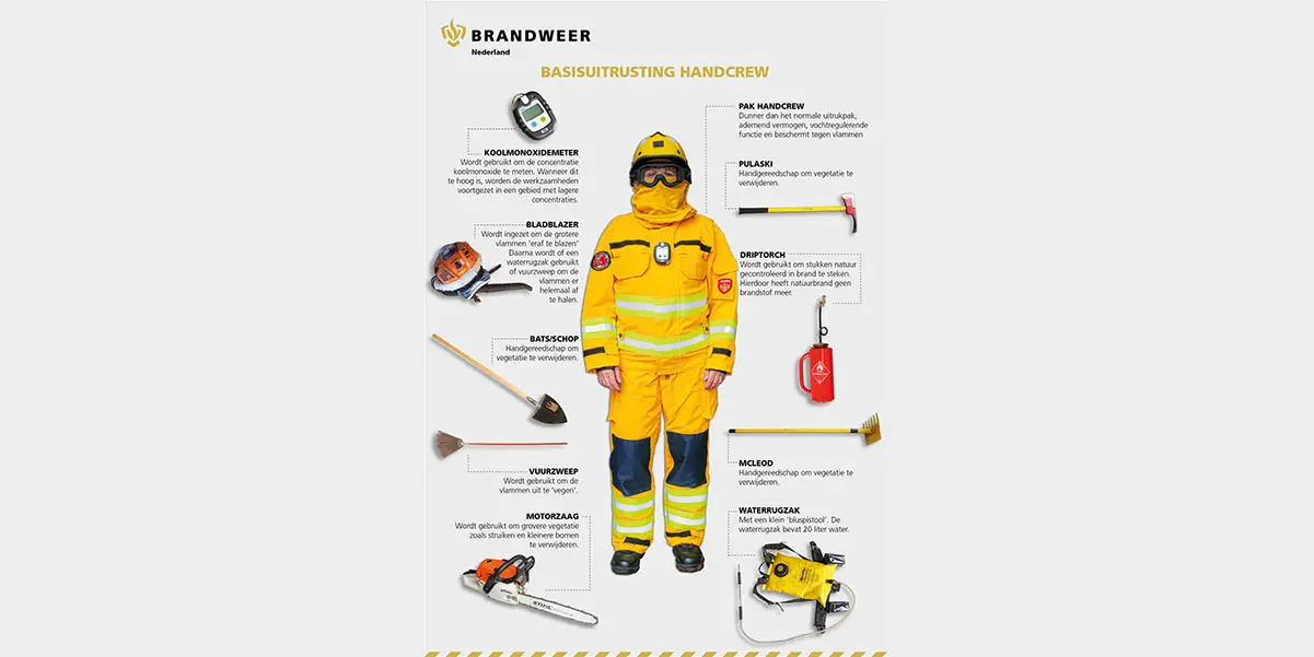 “Het pak is knal geel van kleur, zo vallen de brandweermensen goed op in het veld.”