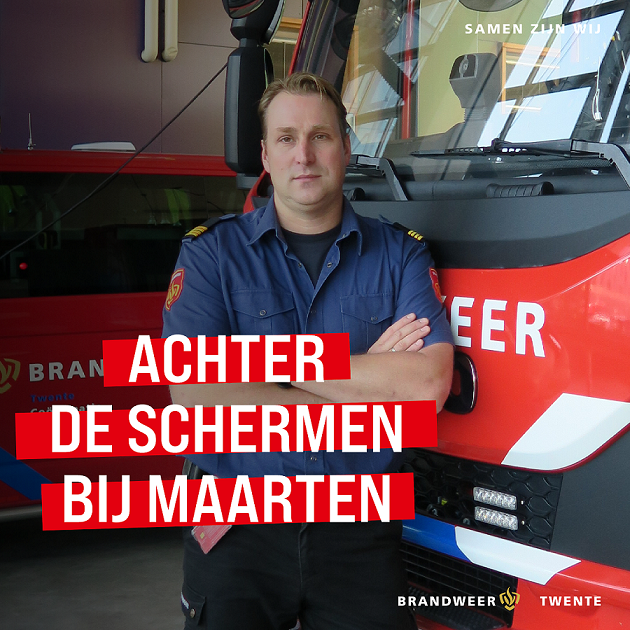 Maarten is met de brandweer opgegroeid. Vanaf het eerste moment dat het kon, heeft hij werkzaamheden verricht voor de brandweer. ‘Op mijn twaalfde ben ik begonnen bij de jeugdbrandweer. Daar leerde ik op een leuke manier de basisbeginselen van het brandweervak en heb ik mijn eerste brandweerervaringen opgedaan.’ Dat smaakte naar meer: ‘Vervolgens ben ik op mijn 18e doorgestroomd naar de vrijwillige brandweer. In 2009 kreeg ik de kans om te solliciteren voor de beroepsbrandweer. Er waren binnen de gemeente Almelo een aantal plekken beschikbaar in het toenmalige team Veiligheid en Hulpverlening. Het was een kans die ik met beide handen aangegrepen heb. Daar ben ik in een paar jaar tijd doorgegroeid naar een fulltime functie bij de afdeling Risicobeheersing. Tegelijkertijd ging ik weer als brandweervrijwilliger aan de slag. Vanaf het moment dat we in 2013 van Brandweer Almelo zijn opgegaan in Brandweer Twente ben ik werkzaam gebleven bij Risicobeheersing en als vrijwilliger in de repressieve dienst.’